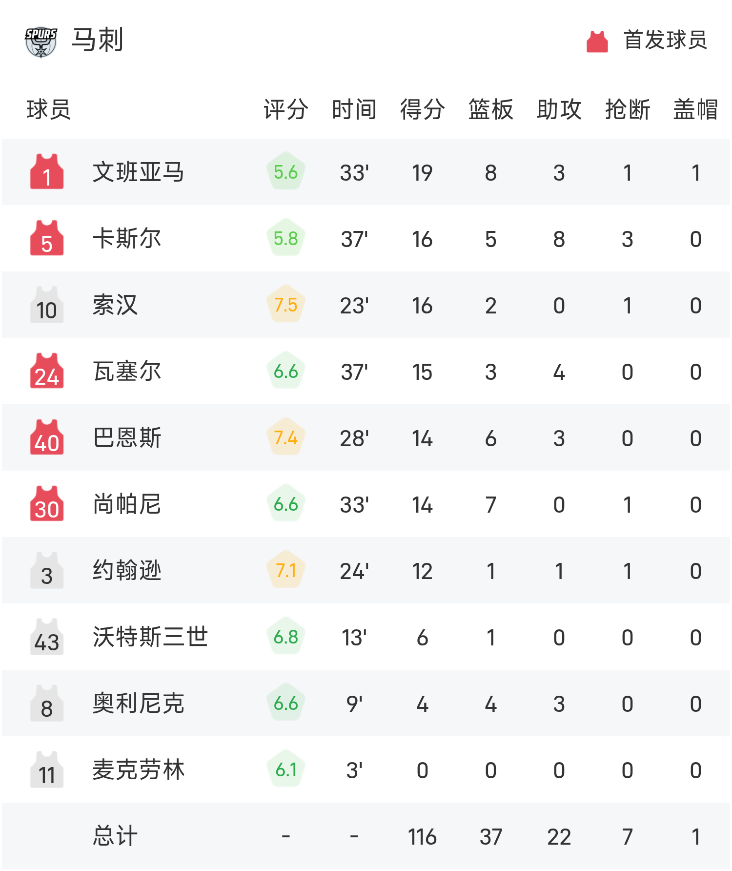 双方全场战罢,湖人118-116战胜马刺。