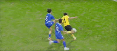 103’陈子文干扰守门员出球,被主裁判判出示警告牌
