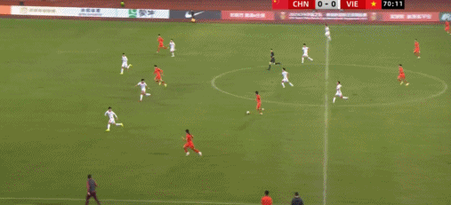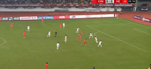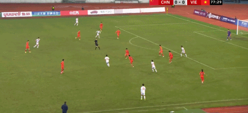 49’越南队制造威胁攻势,阮国越打门遭守卫球员阻挡被守门员得到