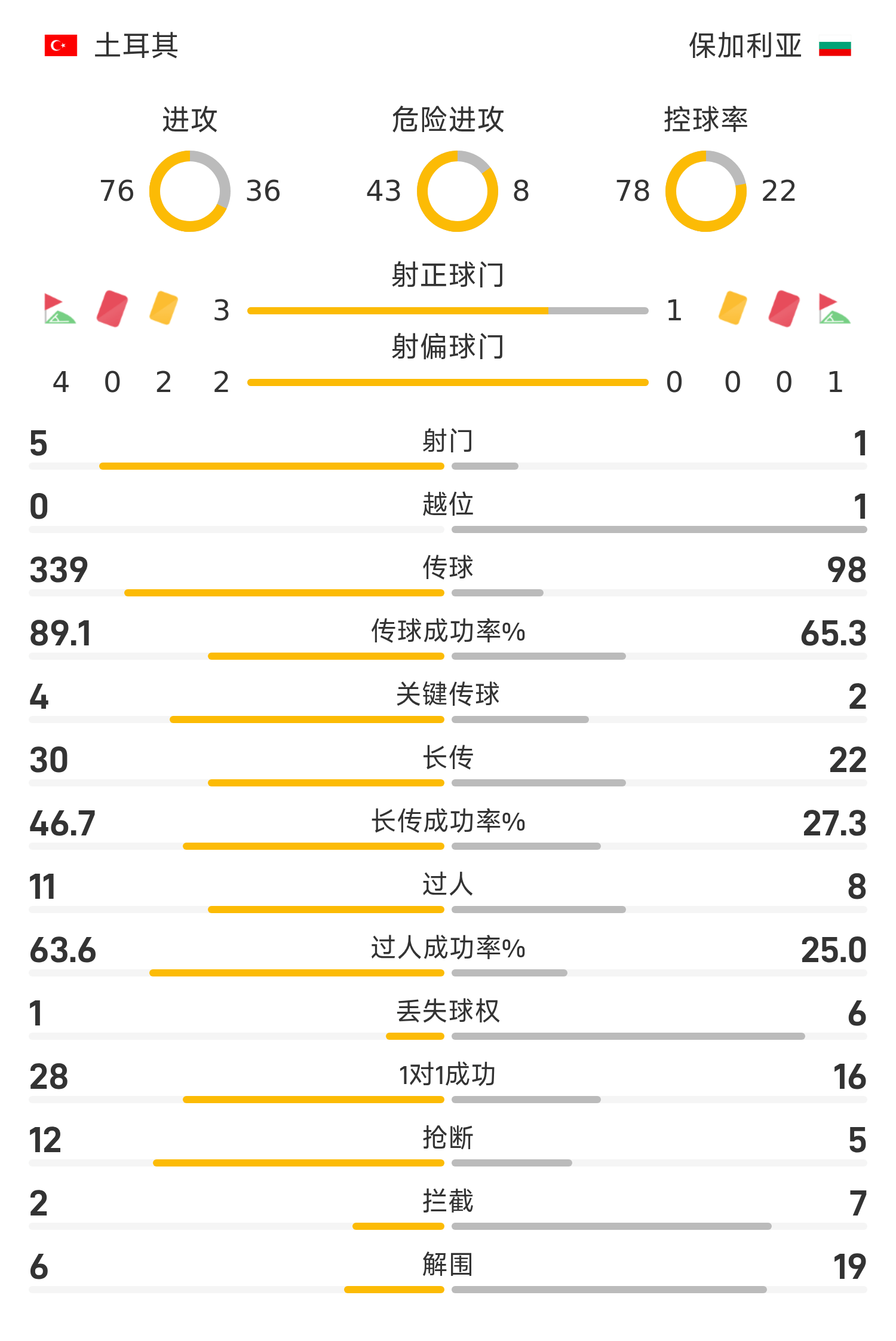 土耳其首发阵容:23-卡基尔、14-巴达克、3-德米拉尔、20-卡迪奥格鲁、2-切利克、10-恰尔汗奥卢、19-艾丁、16-尤克塞克、8-居莱尔、11-伊尔迪兹、7-阿克图科格鲁