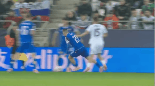 45’什克里尼亚尔三秒区内抢点大力抽射,将皮球直接打高