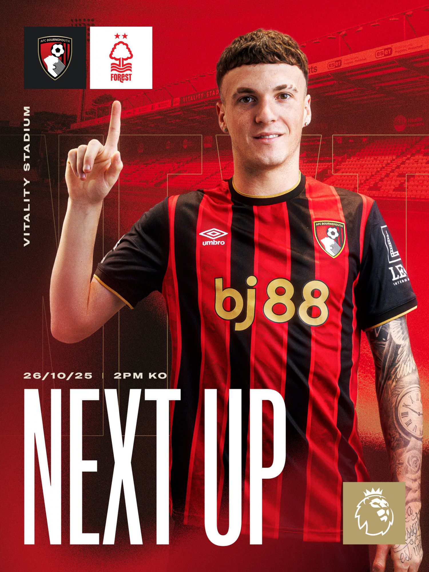 北京时间10月26日晚间22:00,2025/26赛季英超联赛事第9轮,“红樱桃”伯恩茅斯将坐镇主队场活力比赛场对阵诺丁汉森林。
