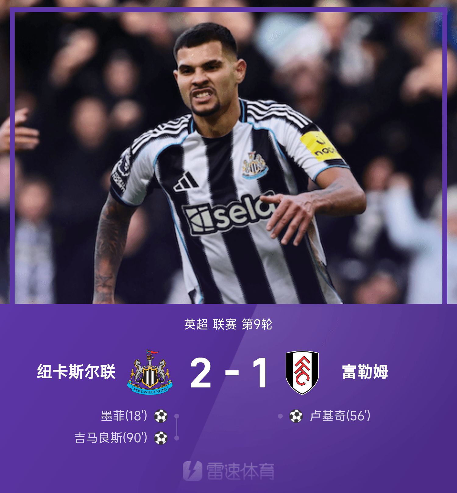 英超战报:墨菲破门+失良机,吉马良斯最后一投,纽卡2-1富勒姆