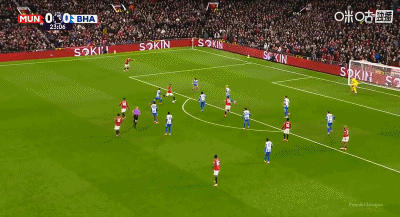 48’B费六码线上抽射被费布鲁亨下意识挡出,曼联仍2-0布莱顿