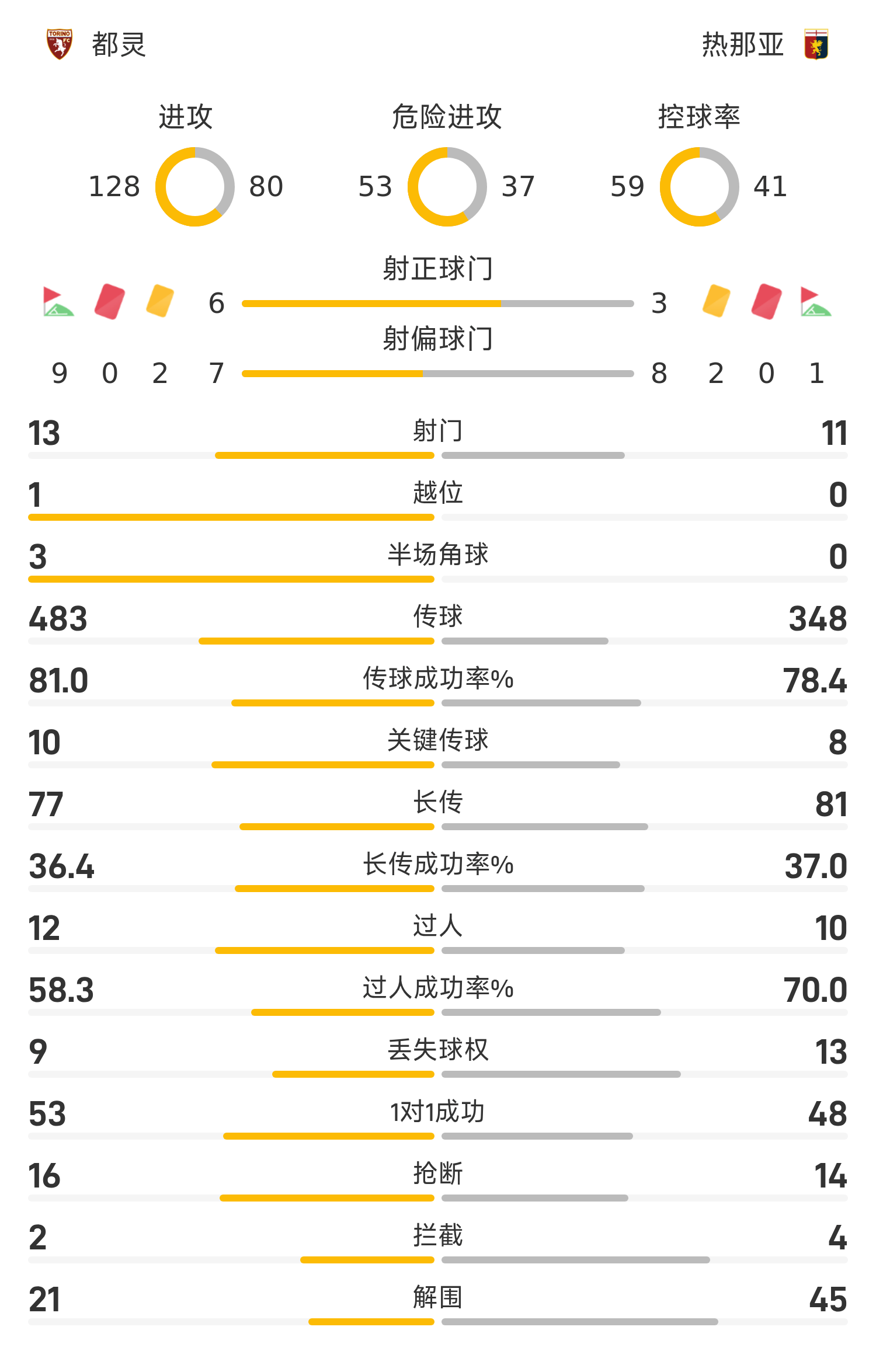 热那亚首发阵容:1-莱亚利、20-撒贝利(78’70-科尔内)、5-厄斯蒂加德、22-巴斯克斯、17-马利诺夫斯基(87’29-科伦坡)、2-索尔斯比(87’9-维蒂尼亚)、32-弗伦德鲁普(78’14-奥纳纳)、77-埃勒特森、73-马西尼、15-诺顿-库菲、21-埃卡托(61’18-埃库班)