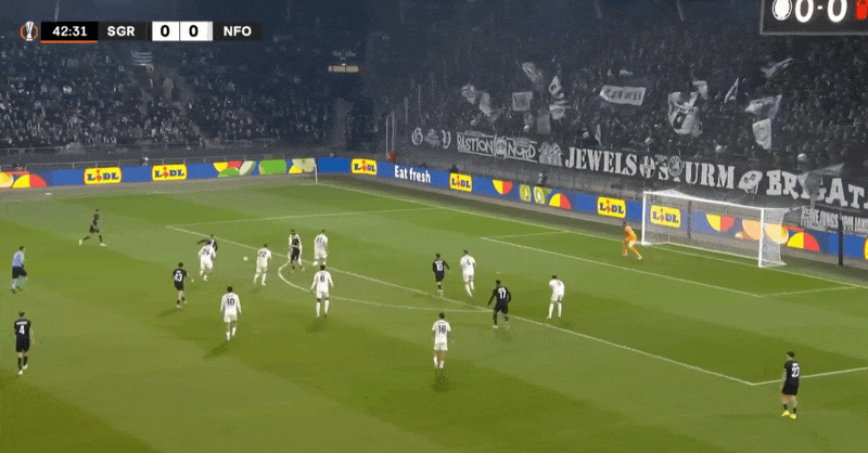 欧联半场:怀特失点,马龙进球被吹,格拉茨风暴0-0诺丁汉森林