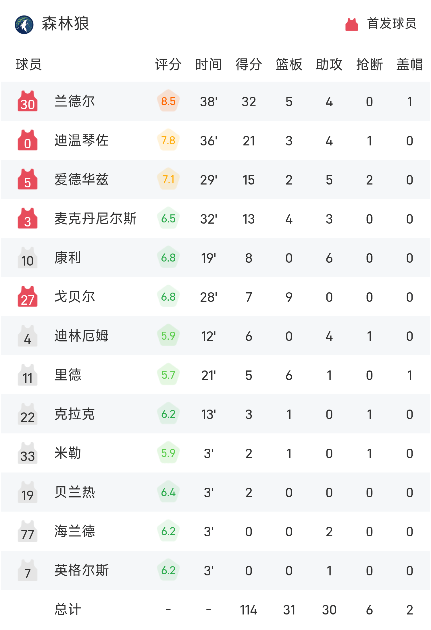 球员数据 查看更多