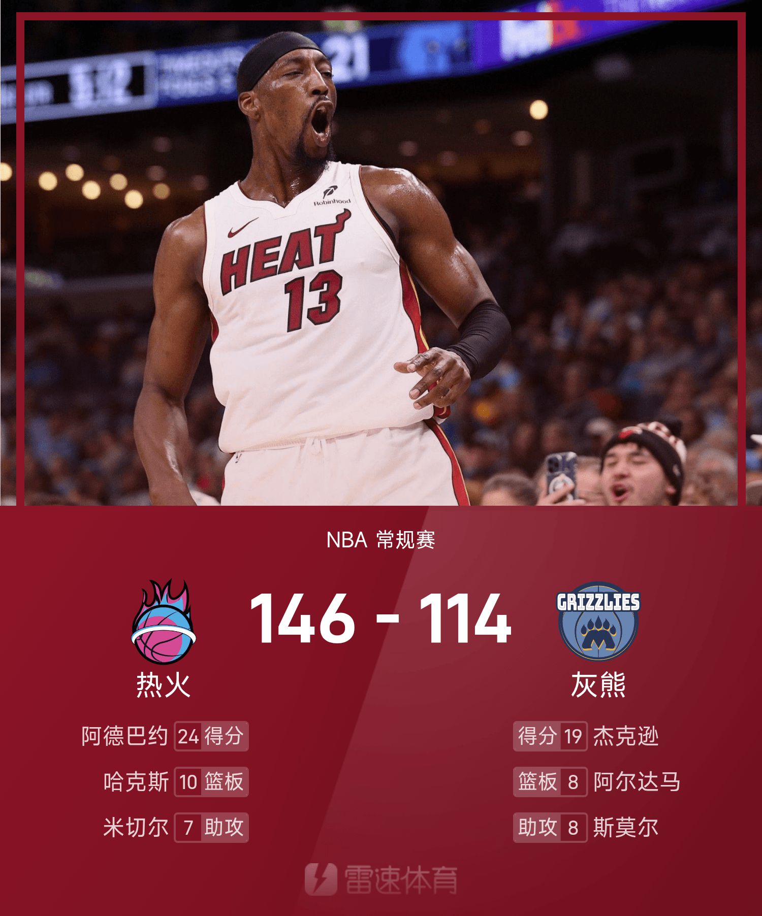 阿德巴约19投8中得到24分5抢篮板4助攻。