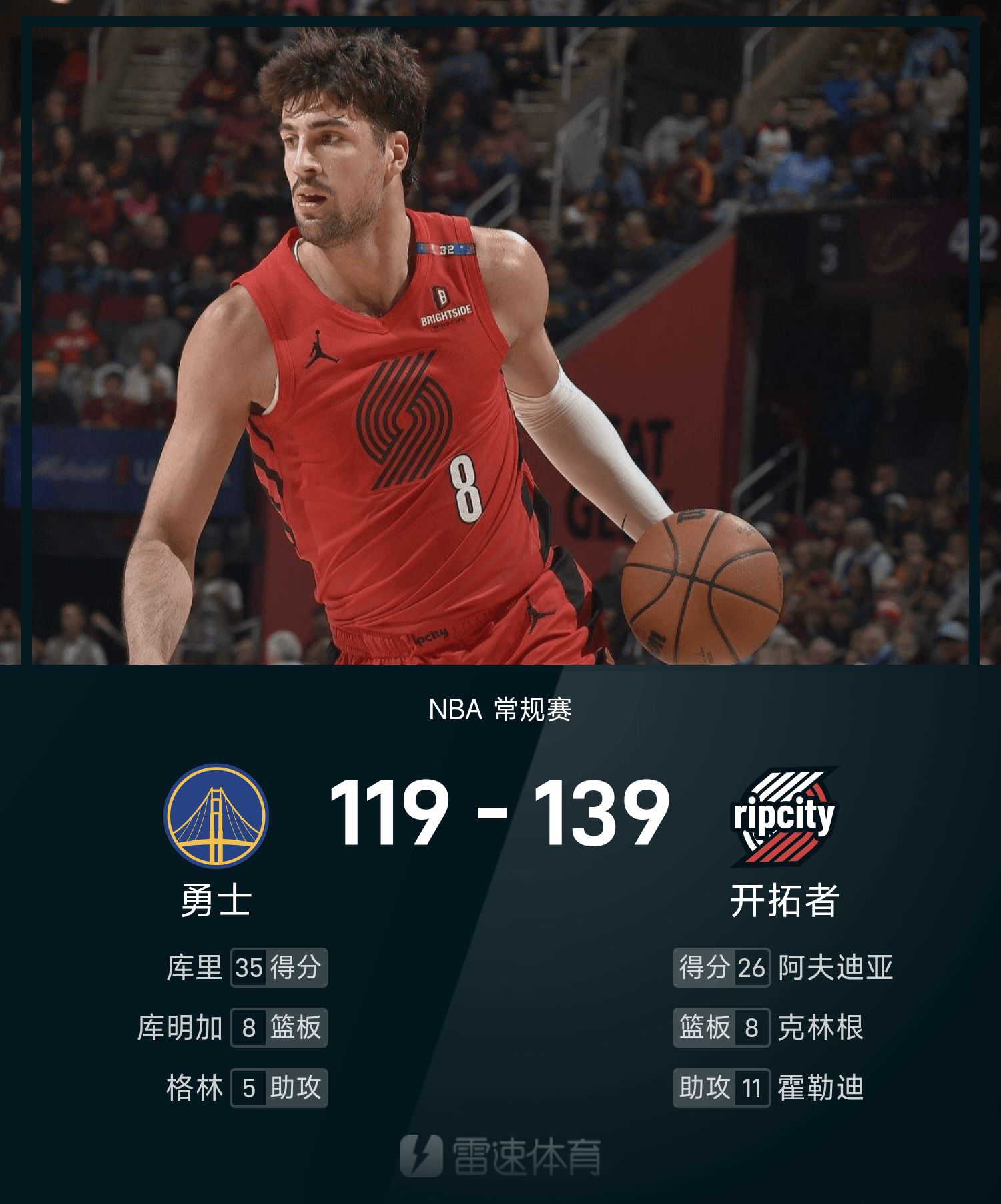 阿夫迪亚18投11中,得到26分5抢篮板6助攻。